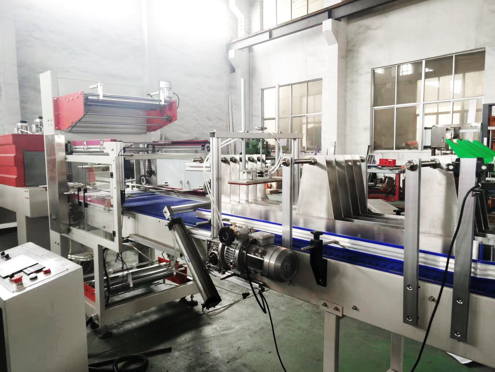 熱收縮包裝機是基于包裝膜受熱收縮的特性而設計制造的高效率、連續作業的全新包裝設備,它可將單個PET飲料瓶或其它類似物品自動排列、集合成組、然后用收縮膜進行包裹,后經加熱收縮、冷卻定型形成集合包裝,包裝后的產品捆綁牢固,外型規整、美觀,開啟方便。因此被廣泛應用于食品、藥品、化工及其它輕工產品等行業。